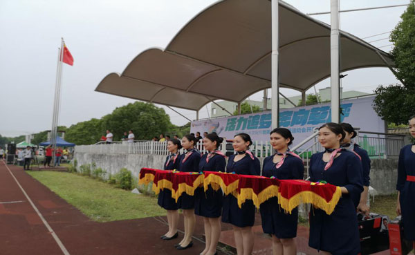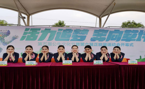 6月16日,宁波公牛集团企业运动会在企业运动场召开。宁波大学科学技术学院继续教育学院航空服务项目部八名女生参加运动会礼仪工作。